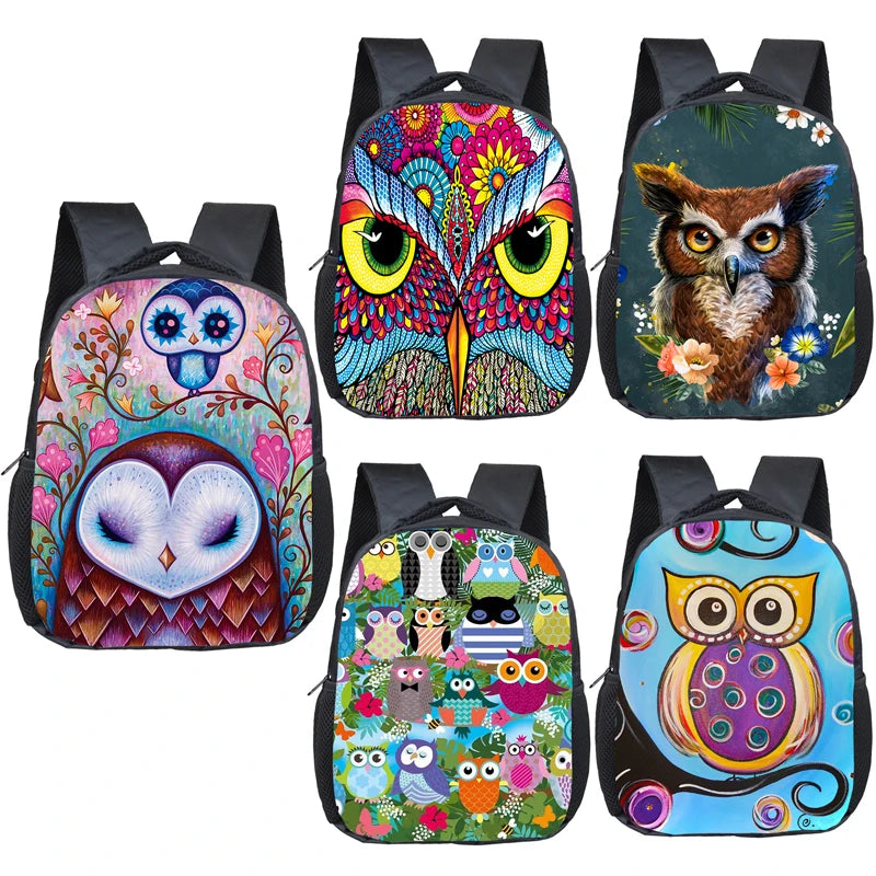 12 Inch Owl Print Backpack for Kids School Bags Boys Girls