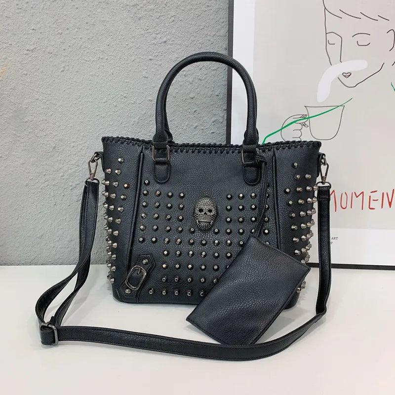 This set includes a stylish women's crossbody bag made of high-quality PU leather with skull rivets design. It also comes with a matching purse for added convenience.