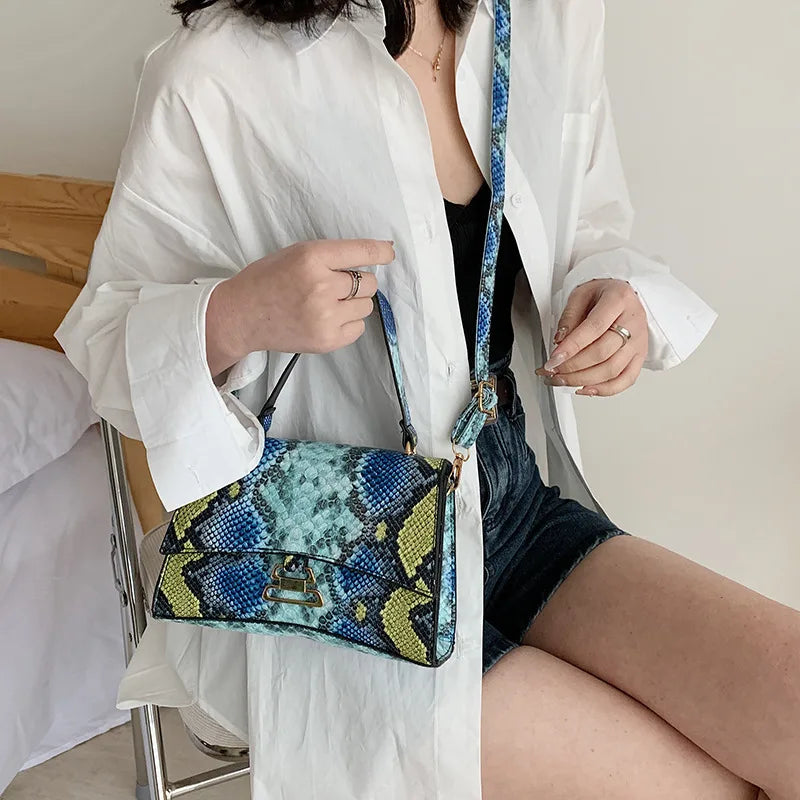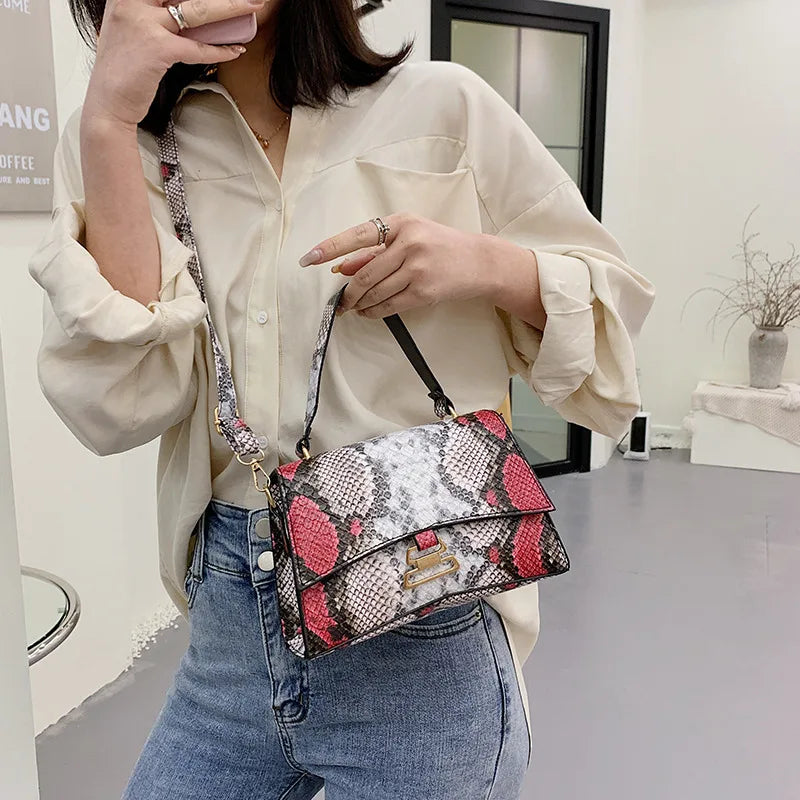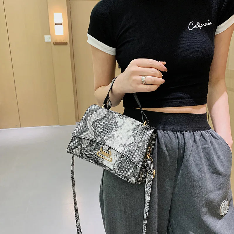 Stay stylish with this chic and trendy snake printed crossbody handbag made of high-quality PU leather. Perfect for everyday use or special occasions.