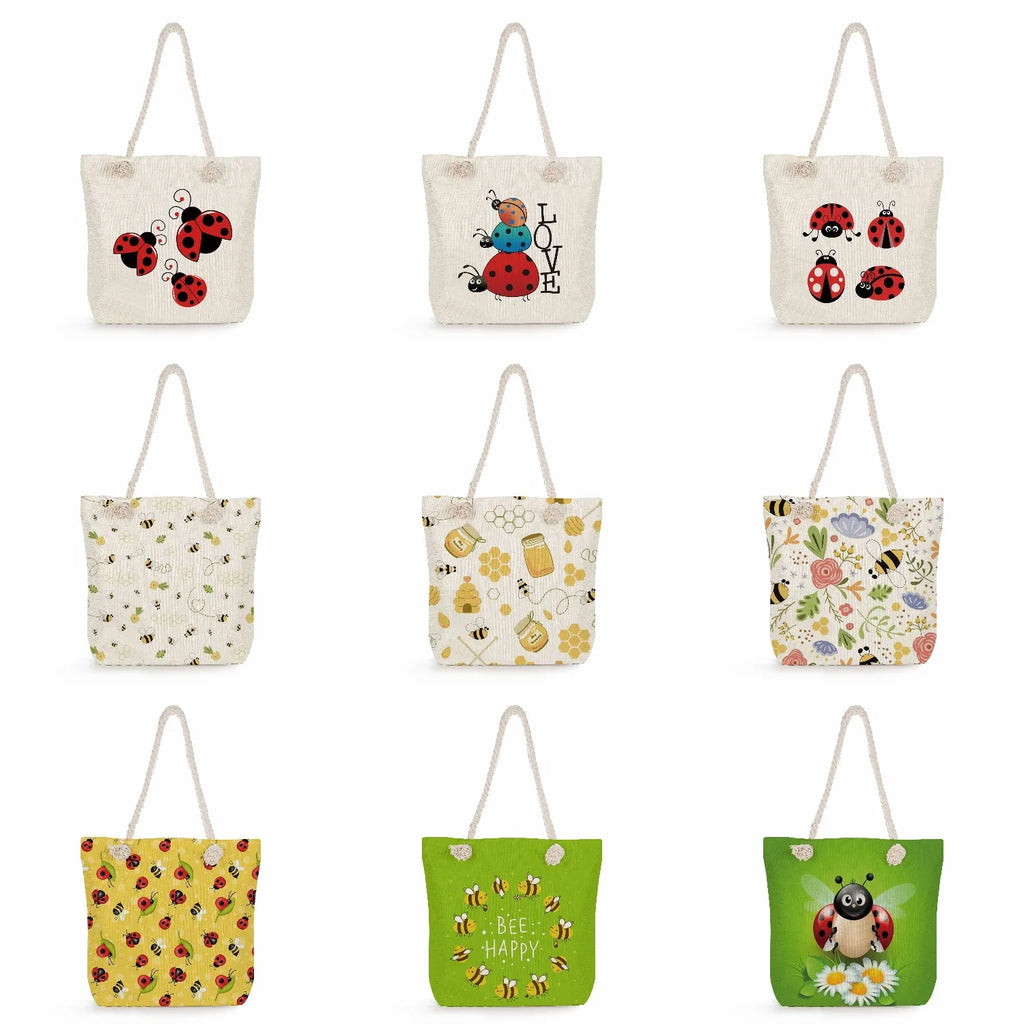 Bee Ladybug Handbags Rope Shoulder Bag Summer Travel Beach Tote Bags
