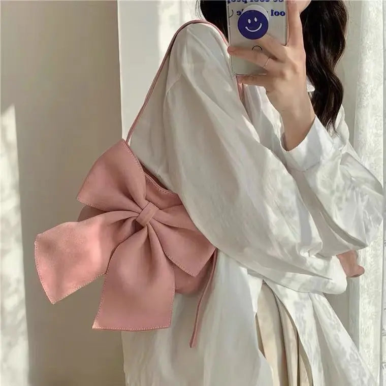 Bow Women's Underarm Bag Casual Hot Girls Shoulder Bags Solid Ladies Tote Purse