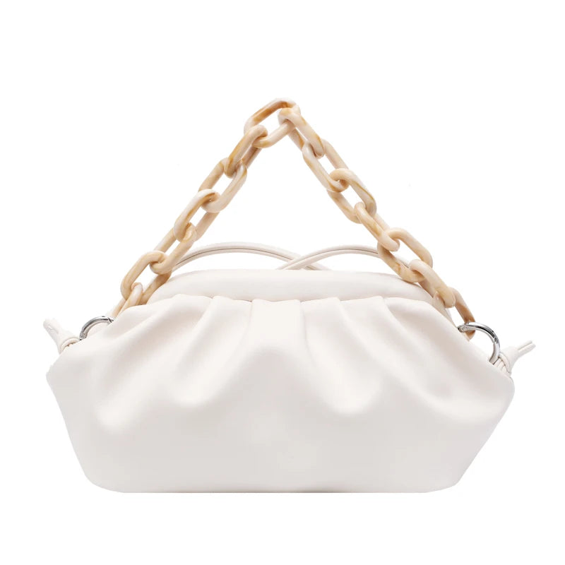 - Features a chain shoulder strap