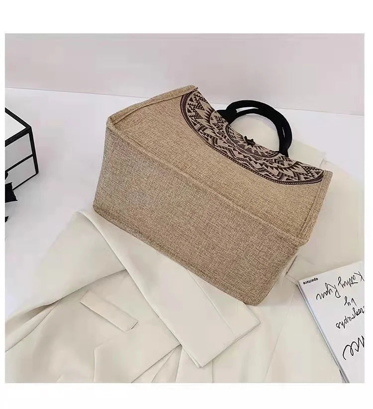 This canvas handbag is perfect for beach trips, shopping, and everyday use. It offers a spacious capacity and a stylish design.