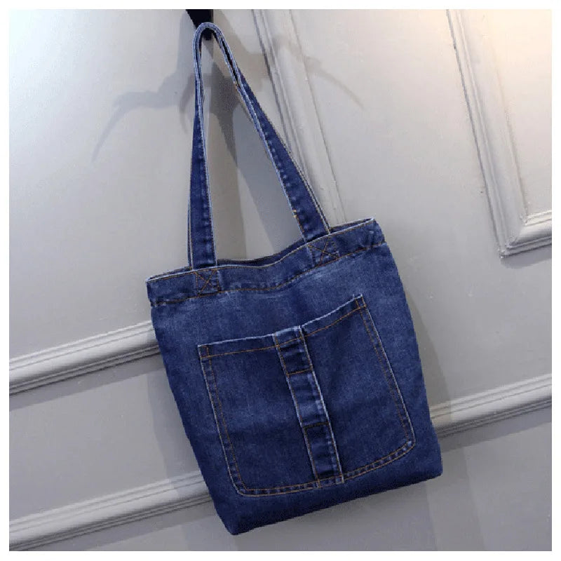 Canvas Denim Shoulder Bag Casual Handbag Street Zipper Shopping Bag