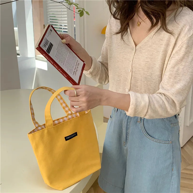 Canvas Grid Bag Female Storage Bucket Eco Tote
