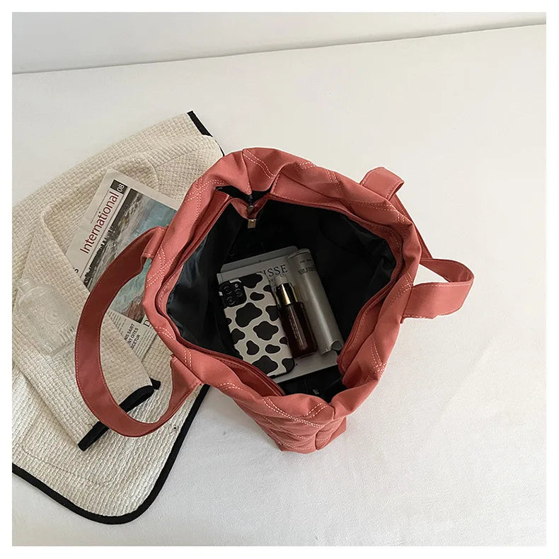 Canvas Shopper Shoulder Bag For Women Soft Cotton Shopping Totes Bag