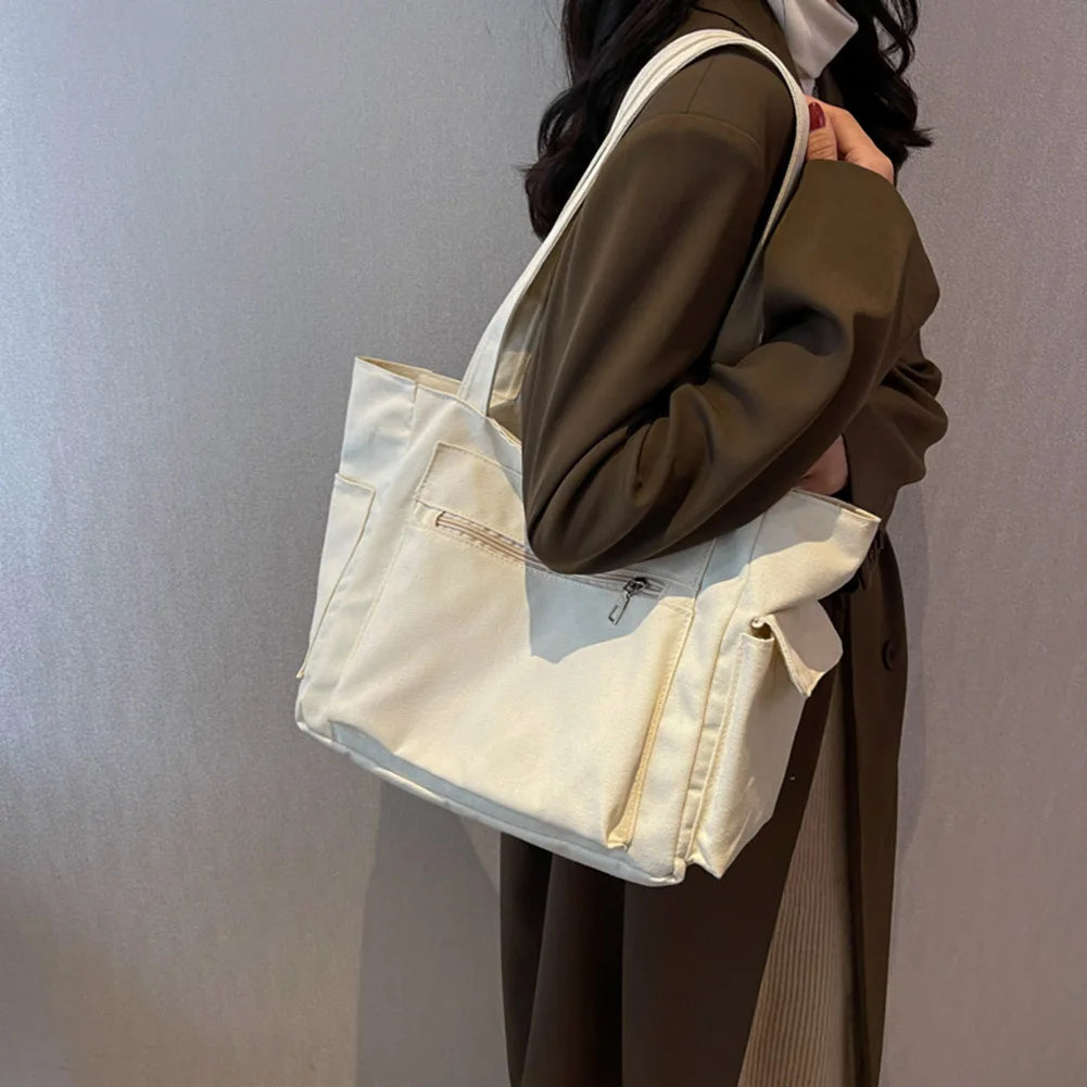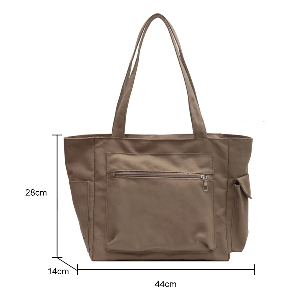 This multi-pocket canvas shoulder bag is perfect for all your needs - whether it's for travel, work, daily use, or shopping. Stay organized and stylish with this functional and durable handbag.