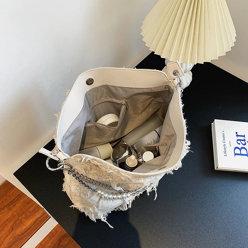 Canvas Tassel Hobo Underarm Handbag Large Capacity Shoulder Bag for Women