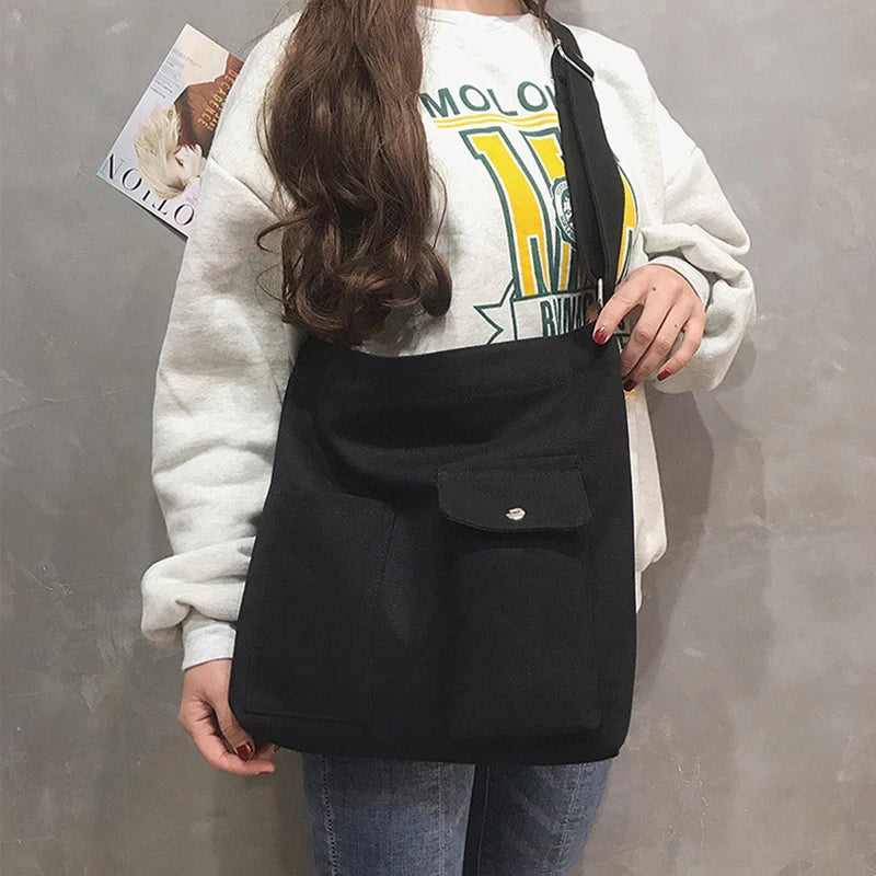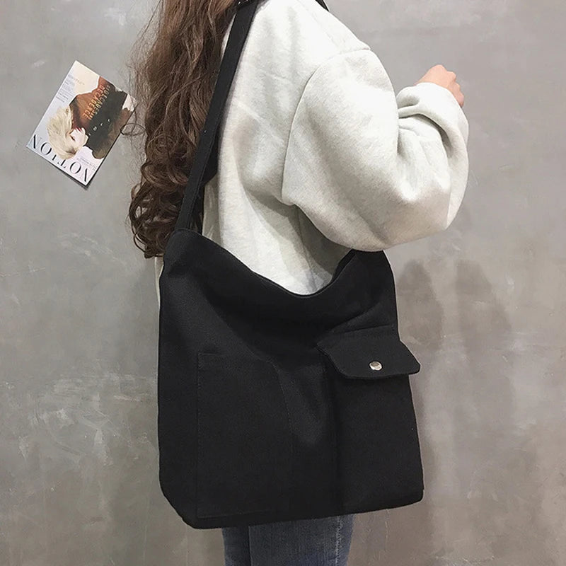 Canvas Tote Bag Large Capacity Crossbody Shoulder School Shopper