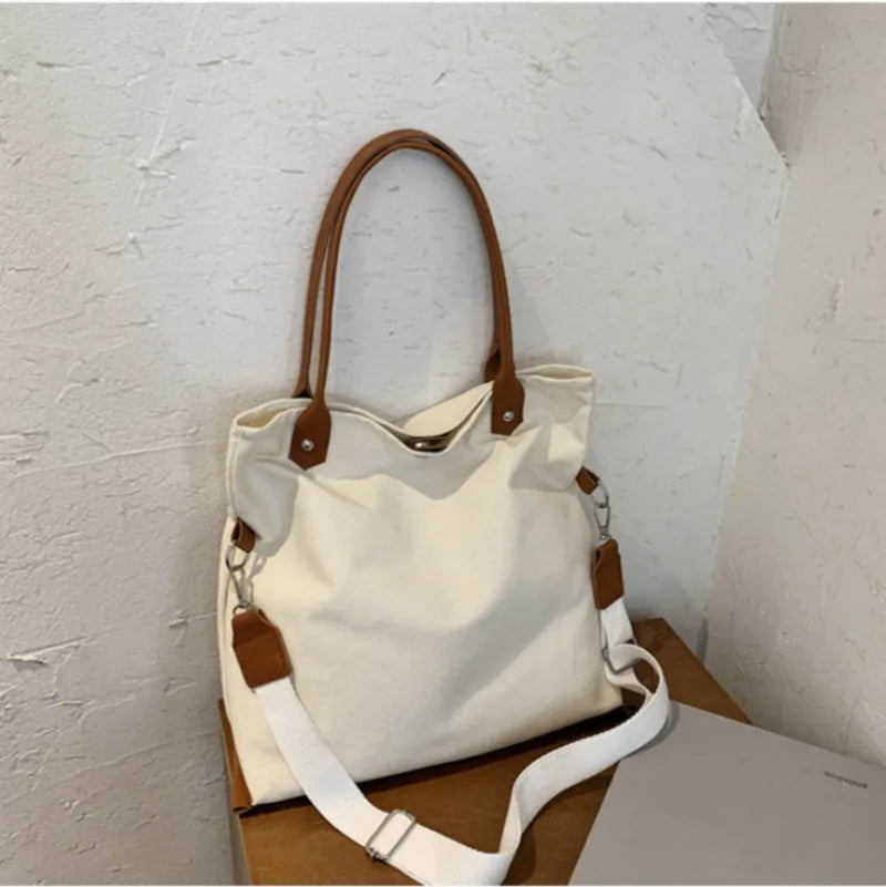 This canvas tote bag is perfect for carrying your essentials in style. It has a spacious design with multiple pockets for organization.