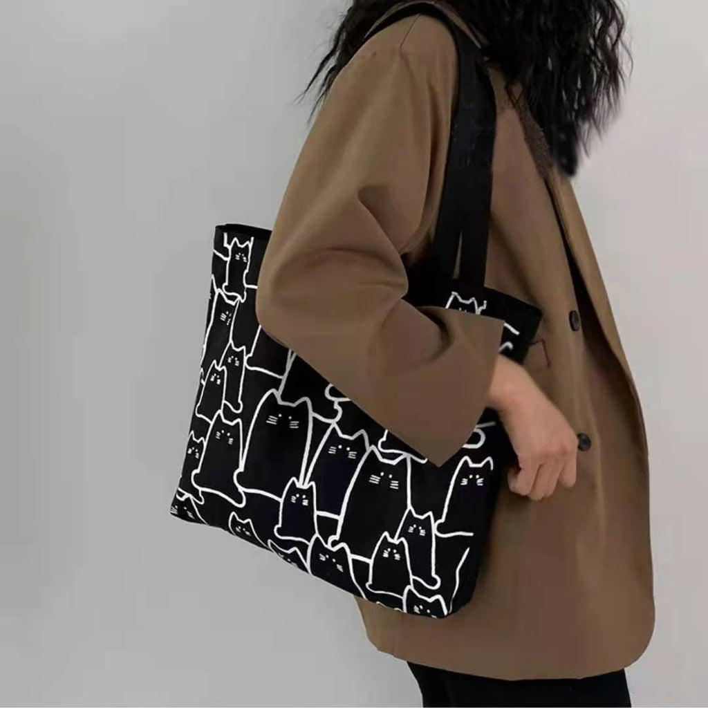 This canvas handbag is perfect for everyday use, featuring a stylish print design. Made of durable cotton cloth fabric, it's ideal for shopping, school, or any casual outing.
