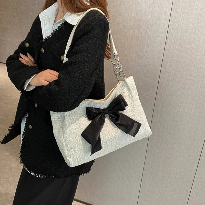 Canvas Women Shoulder Bag Large Tote Shopper Bag Bowknot Female Bags