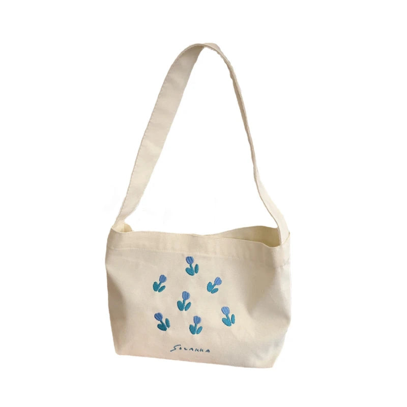 This canvas shoulder bag is perfect for female students. Made of cotton cloth, it offers a Japanese-inspired design for a stylish look.
