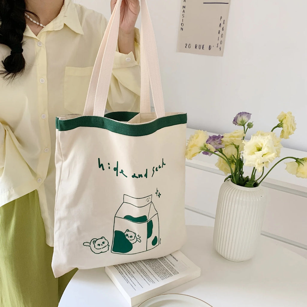 Cartoon Canvas Tote Bag Eco Shopping Large Ladies Handbags