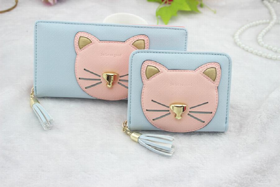 This creative long wallet handbag features a cartoon cat design perfect for cat lovers.