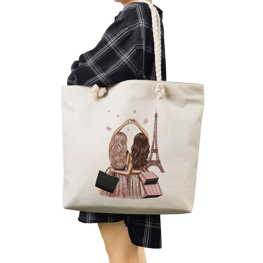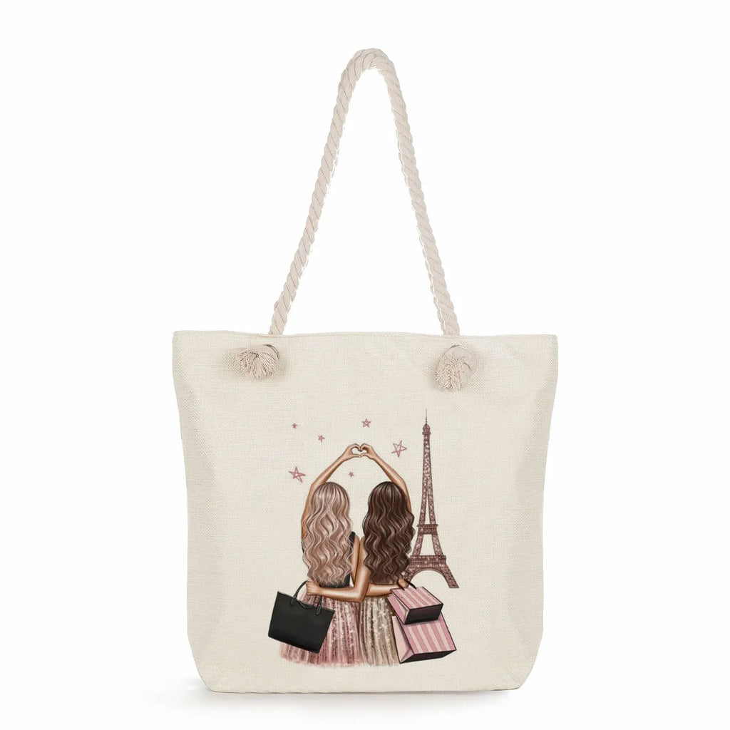 Description:Stay stylish with this reusable shoulder bag featuring a fun cartoon girlfriend and sister print. Perfect for beach days, shopping trips, or hanging out with friends!Features: Durable and thick rope handles for comfortable carrying Spacious interior to hold all your essentials Fashionable design that adds a touch of whimsy to...