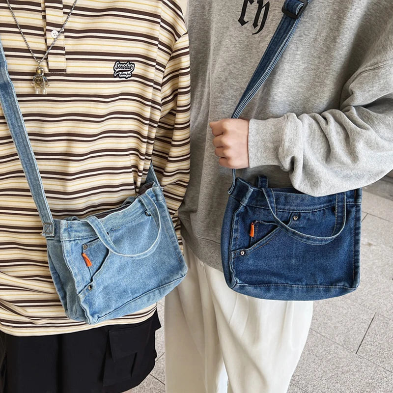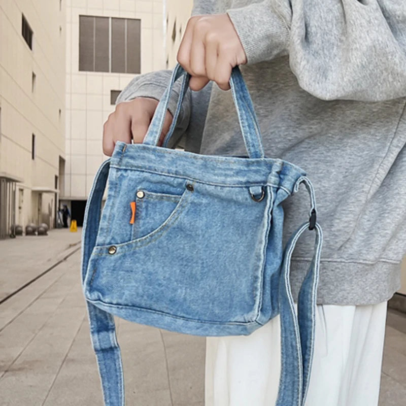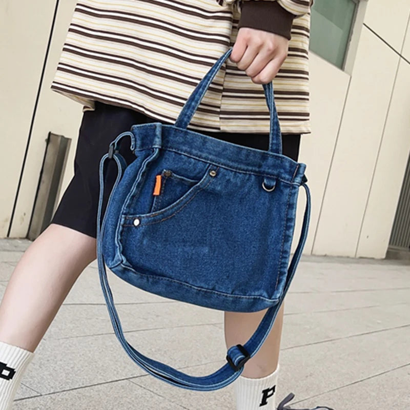This denim shoulder messenger bag is perfect for shopping, school, or everyday use. It is a large tote handbag suitable for girls and students.