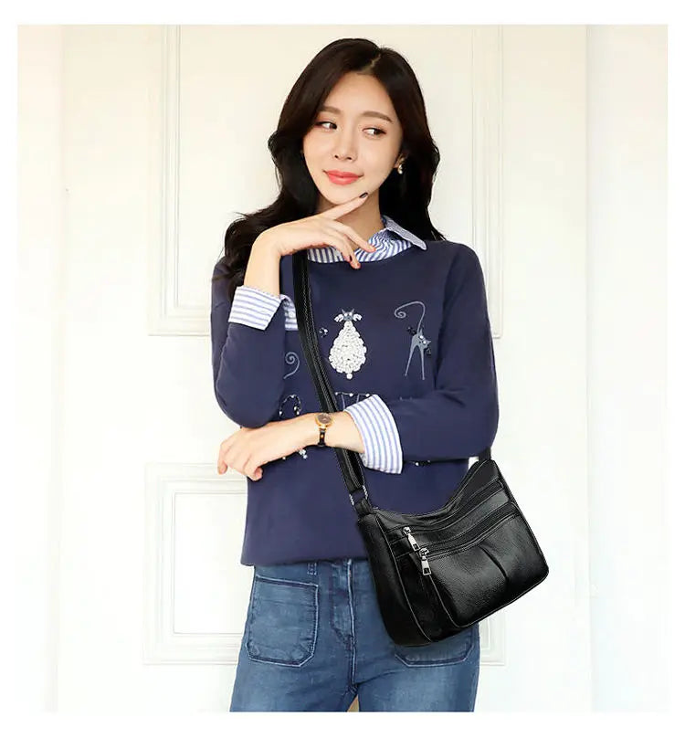 Casual PU Leather Crossbody Bag for Women Messenger Handbag