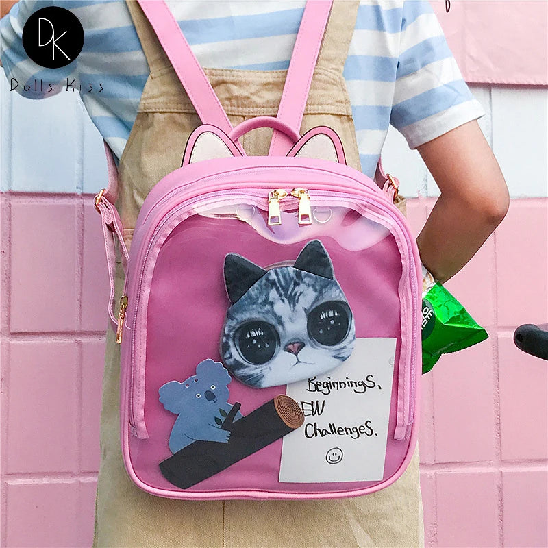 Cat Ear Transparent Backpack for Girls Harajuku Badge ITA Display Pin
