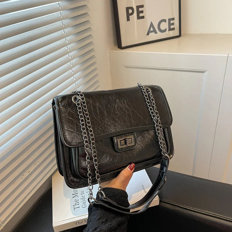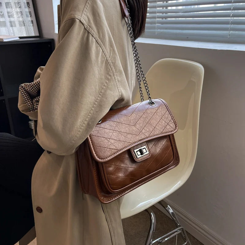 Chain PU Leather Crossbody Bags For Women Shoulder Flap Bag Lady Thread Handbags