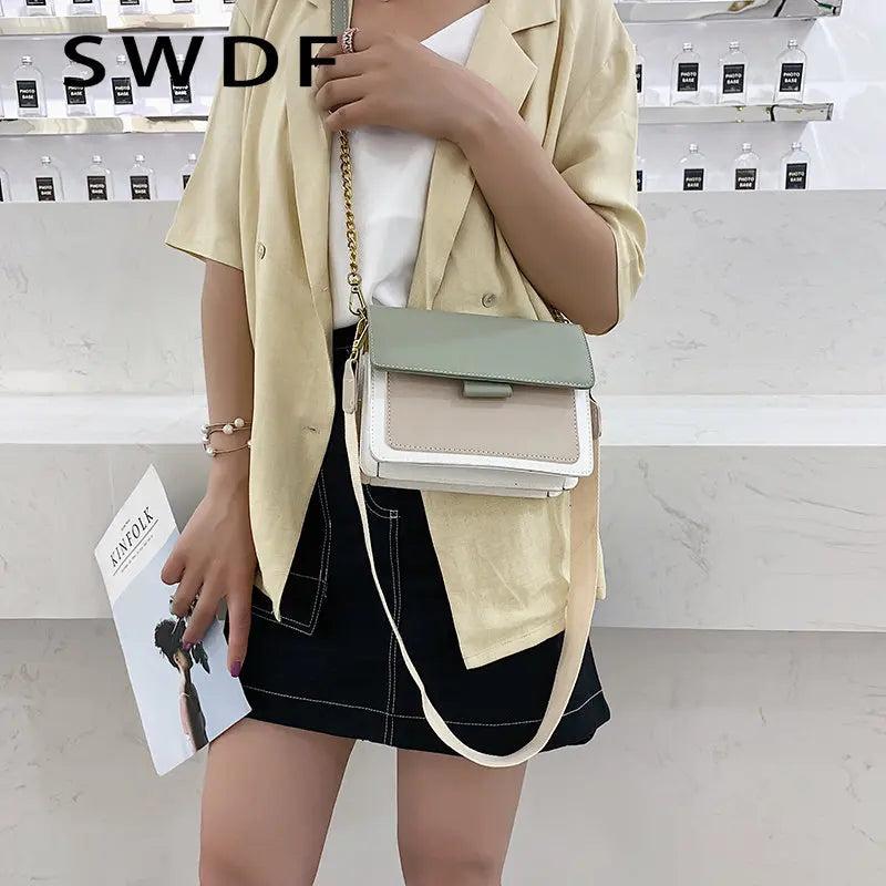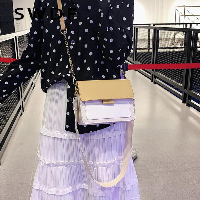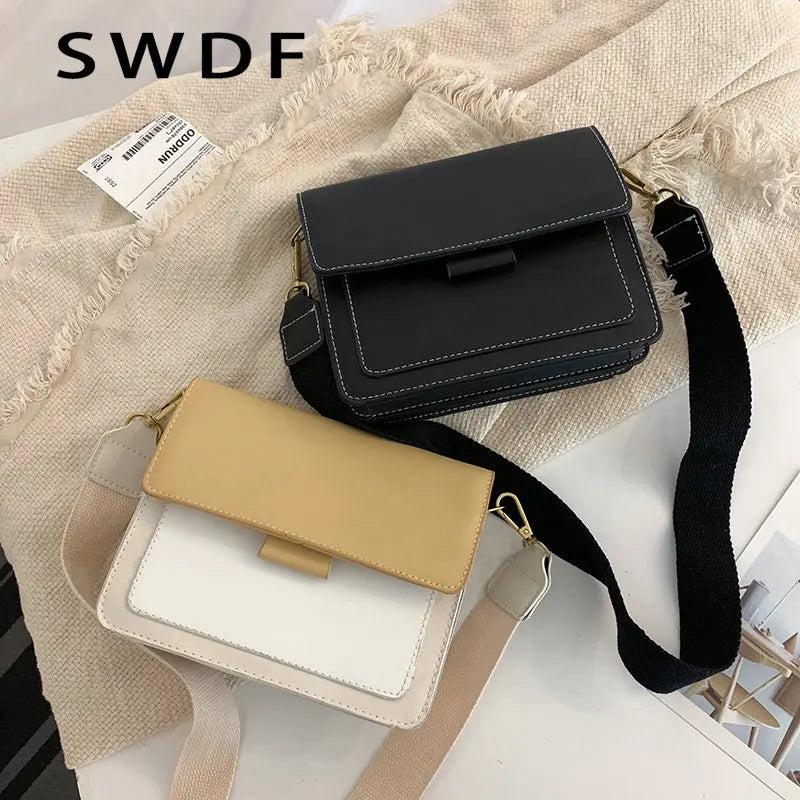 Contrast Leather Crossbody Bag for Women Shoulder Handbag Travel Sac