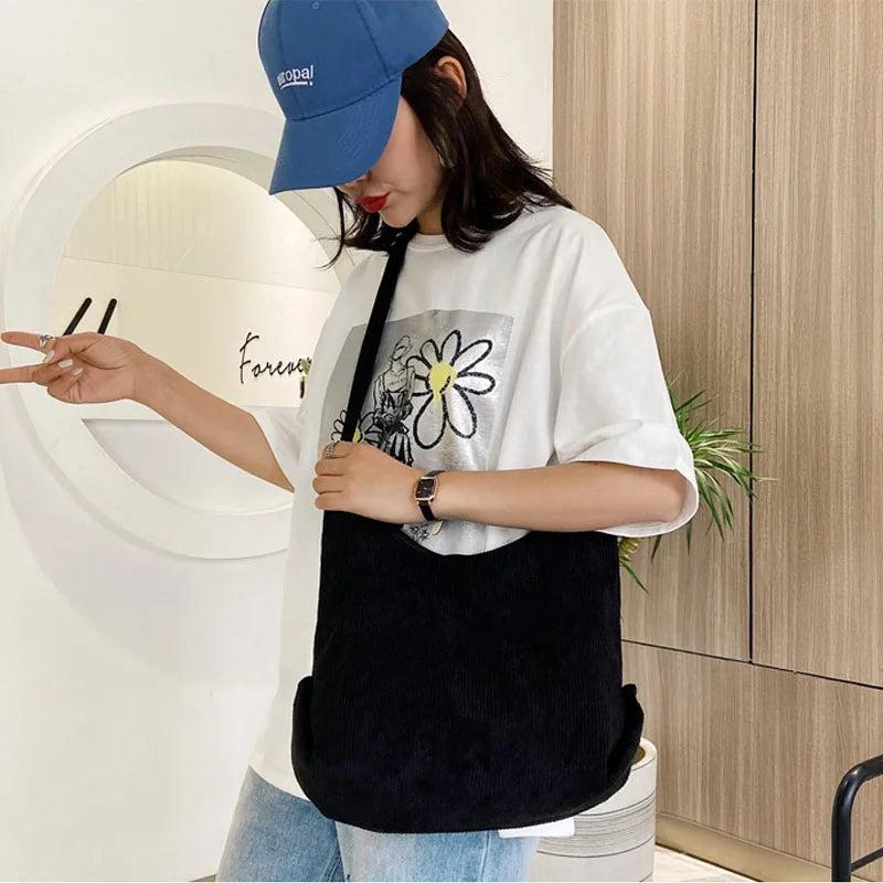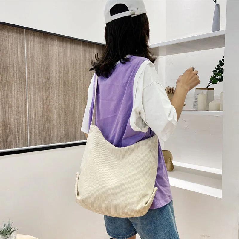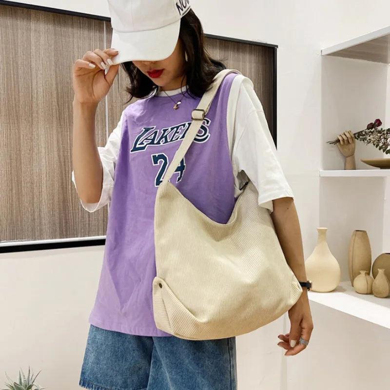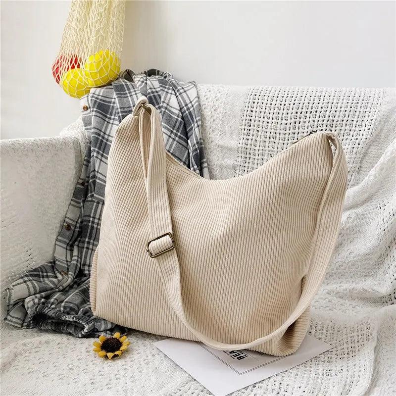 Stay stylish with this striped corduroy crossbody bag, perfect for college girls. The bag is designed with a trendy striped pattern and convenient crossbody strap for all-day comfort.