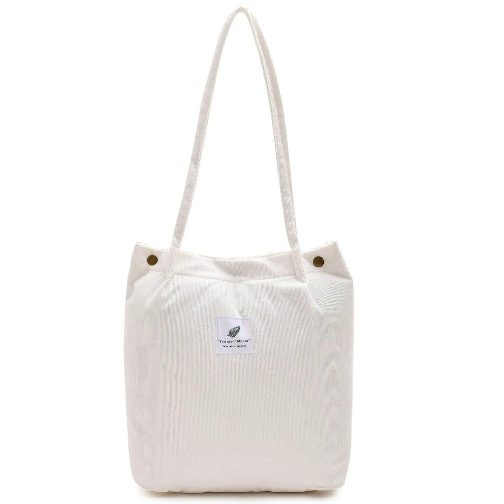 Corduroy Shopping Tote Bag Canvas Shoulder Handbag Eco Friendly Foldable Grocery