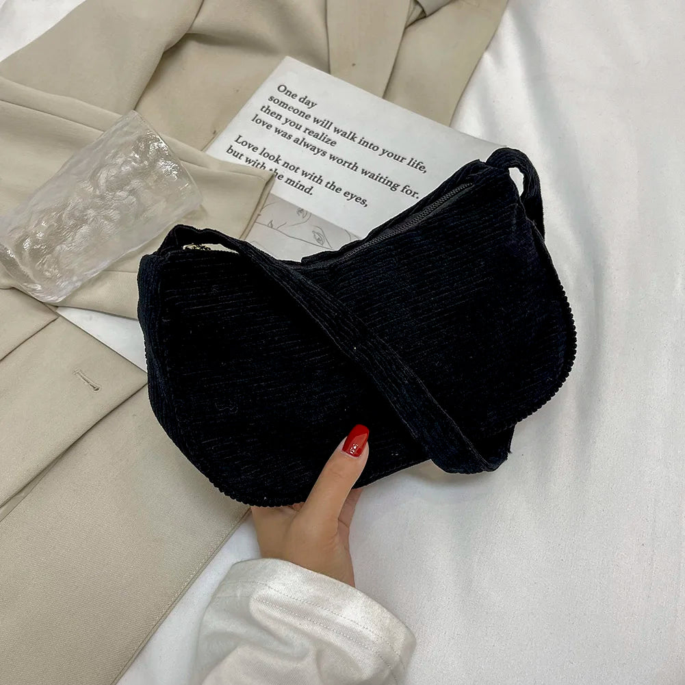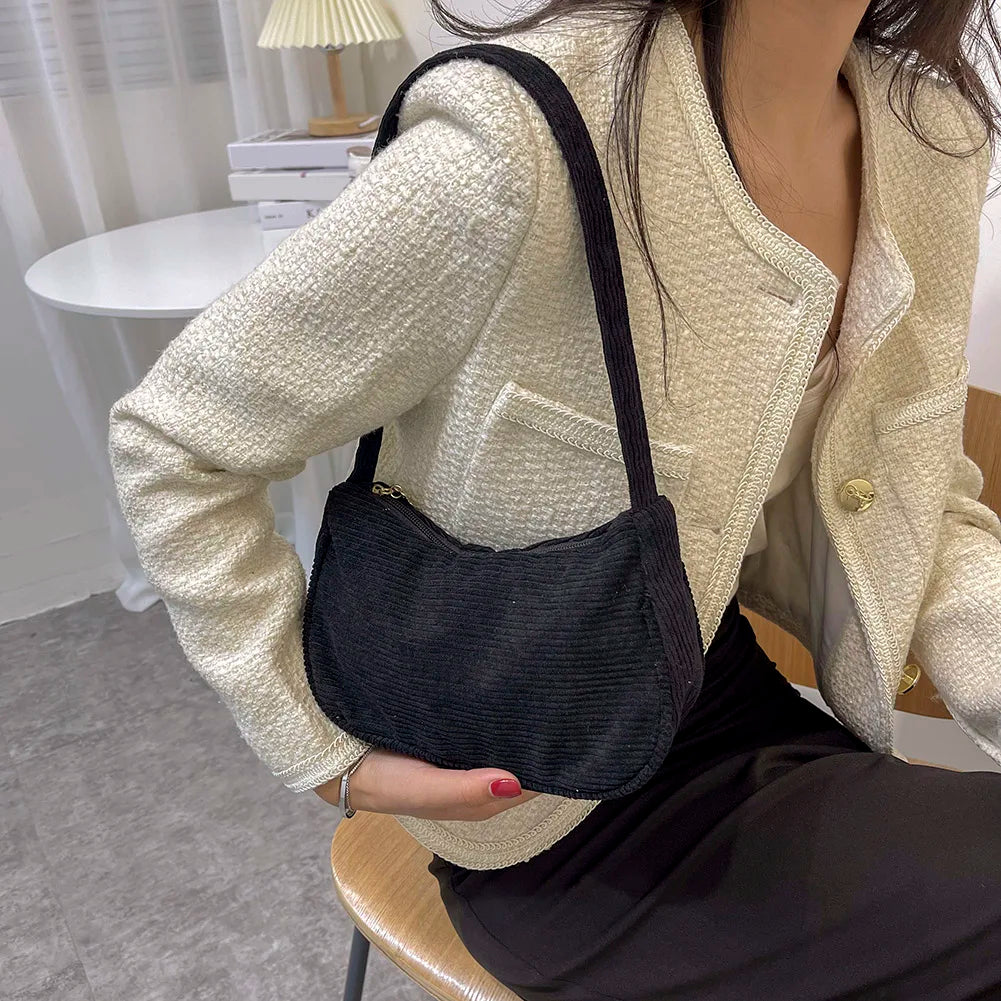 Stay stylish this autumn with this small underarm bag. Crafted from retro corduroy, this shoulder purse is perfect for your essentials. Keep your look on-trend with this solid colored handbag.