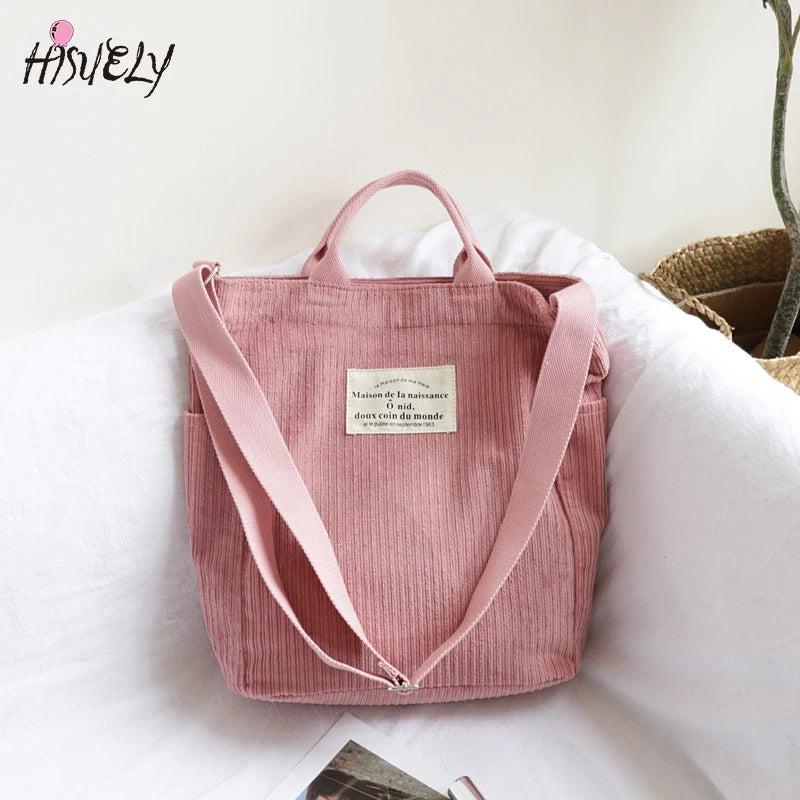Corduroy Shoulder Bag Large Capacity Tote Female Crossbody Messenger Bags