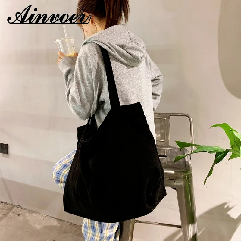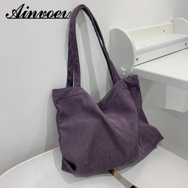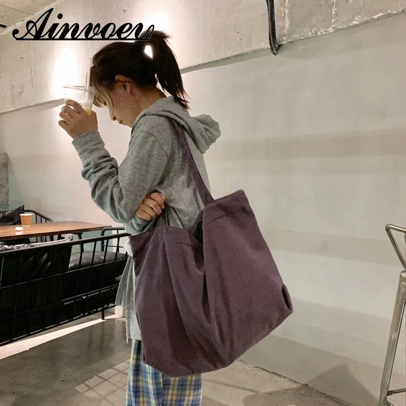 Stay fashionable with this retro corduroy tote bag perfect for shopping or the beach. It's a casual and stylish accessory for women.