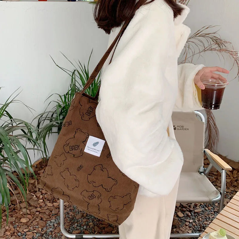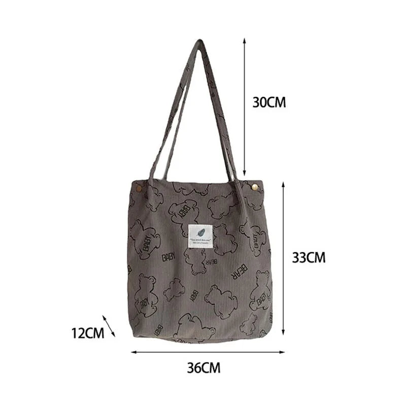 - Fashionable and functional bear corduroy tote bag