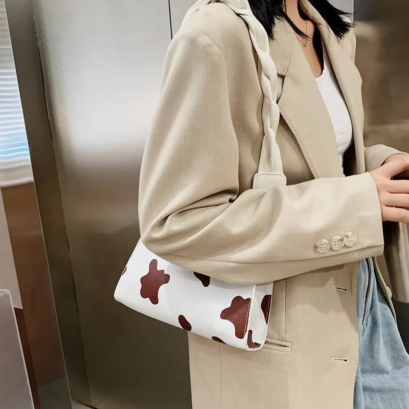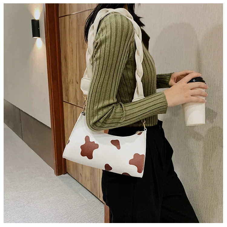 This trendy cow pattern bag is a versatile accessory that can be used as a shoulder bag, crossbody bag, or small messenger bag. Perfect for adding a touch of fun to your outfit!
