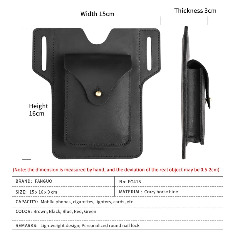 This stylish waist pack phone bag is made of high-quality crazy horse leather, perfect for men on the go.