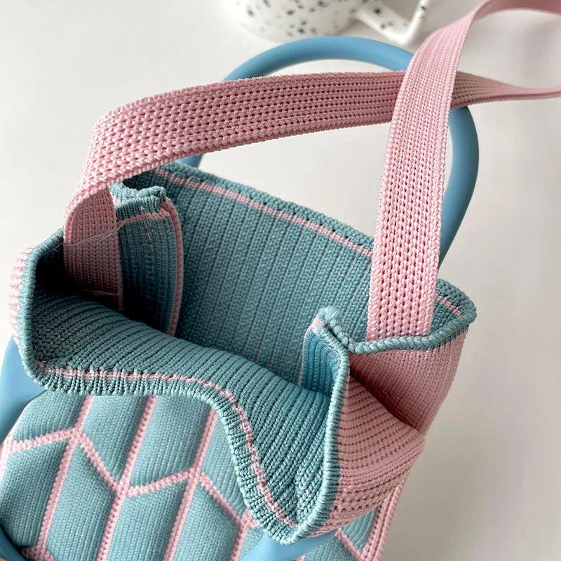 This cute crochet handbag is perfect for carrying your essentials in style. It features a flap design and comes in a variety of candy colors.