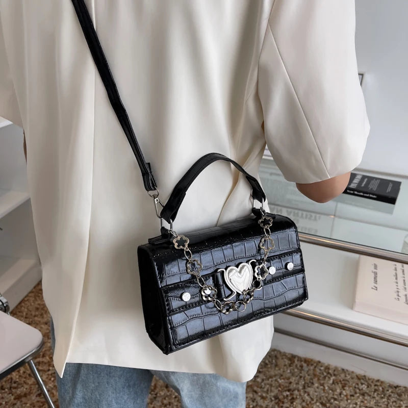This stylish shoulder bag features a crocodile pattern design made of high-quality PU leather. It has a retro chain strap and a square shape, perfect for daily use.