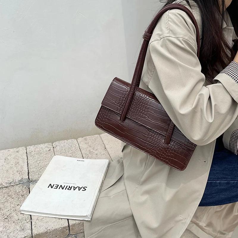 Elegant crocodile pattern shoulder bag made of high-quality PU leather, perfect for daily use. This small tote purse is stylish and practical, suitable for any occasion.