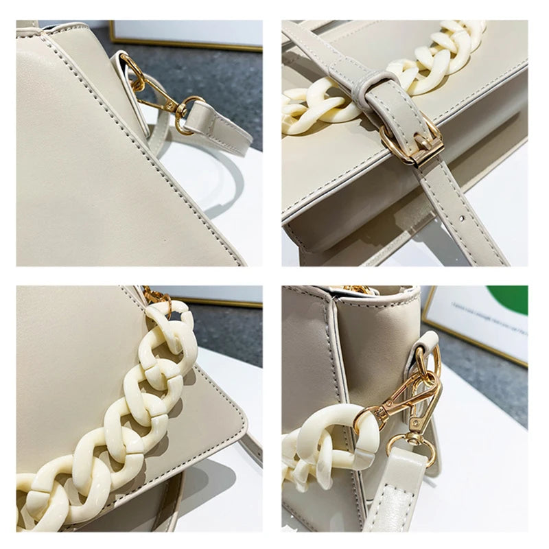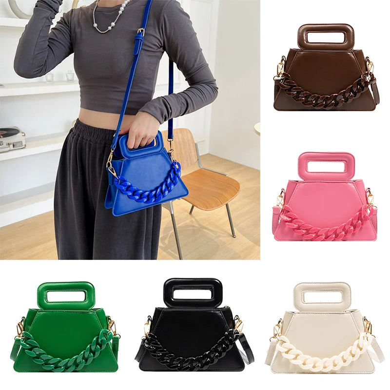 This stylish crossbody bag is made of high-quality PU leather with a thick chain design. It's perfect for all your essentials and adds a touch of elegance to any outfit.