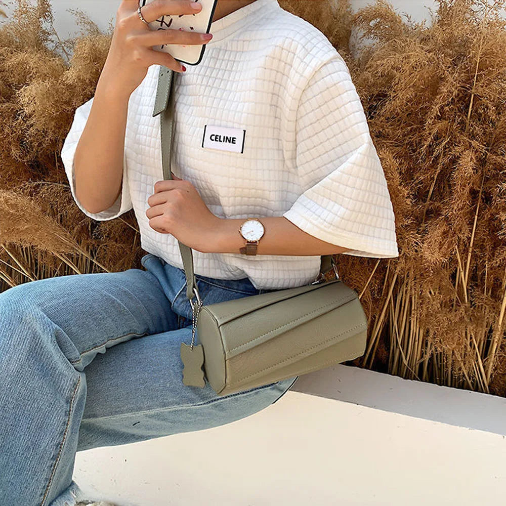Cylindrical PU Leather Lady Messenger Bag Handbag