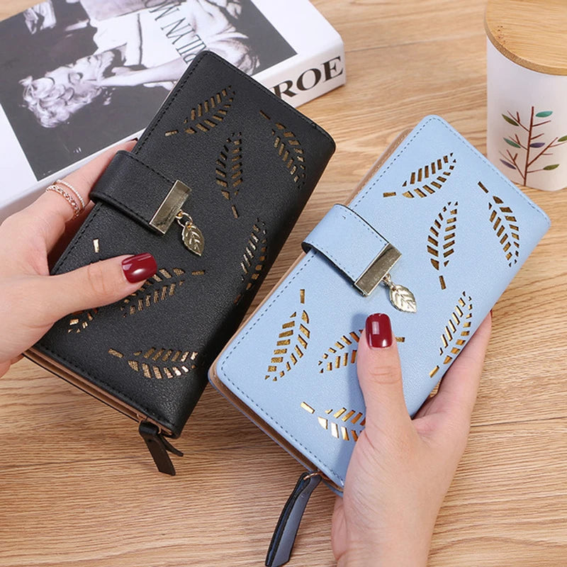 Stay organized with this stylish multi-functional clutch wallet designed for women, girls, and ladies. Made of PU material, it features a pierced design and can hold credit cards, phone, and more.