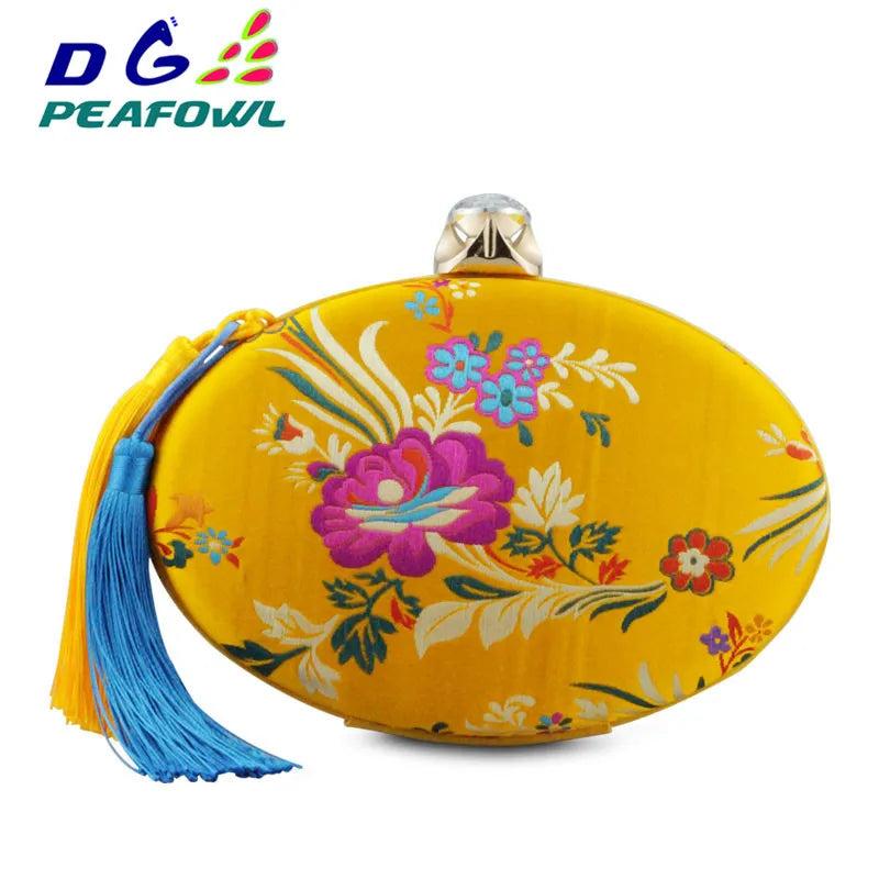 DGPeafowl Women Bag Tassel Metal Cheongsam Clutch Chain Shoulder Evening Bags