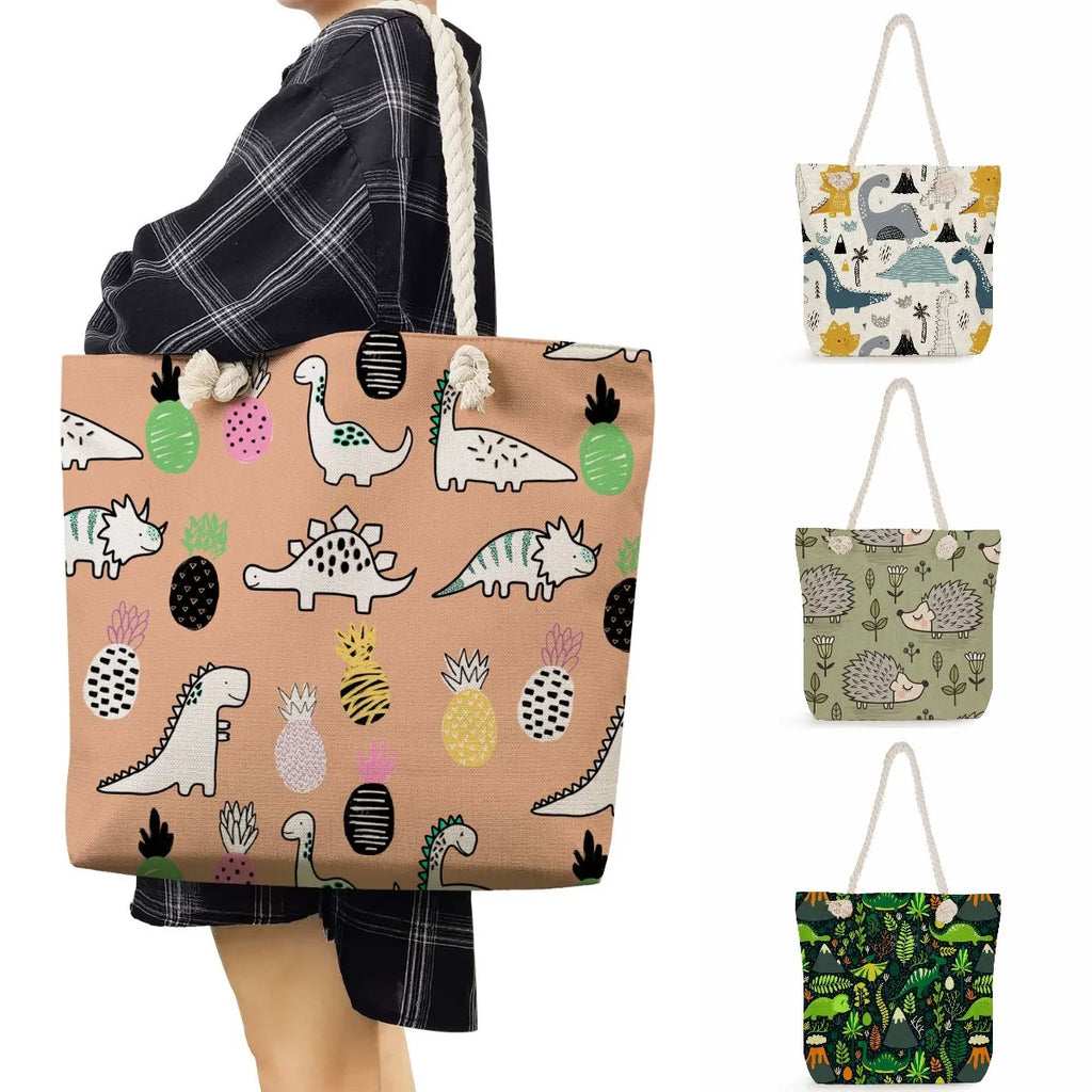 Dinosaur Print Animal Shoulder Bag Casual Tote Large Capacity Shopping Bag