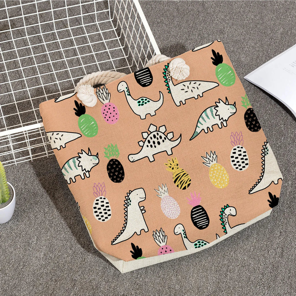 Dinosaur Print Shoulder Bag Cartoon Tote Women Handbag Large Capacity Shopping B