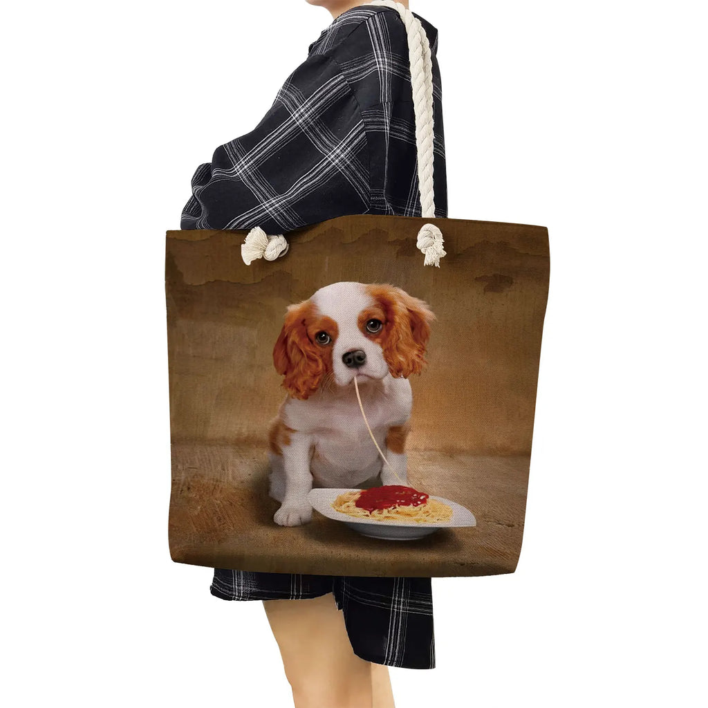 Dog Print Shopping Bag Animal Graphic Women Shoulder Bags Eco Reusable