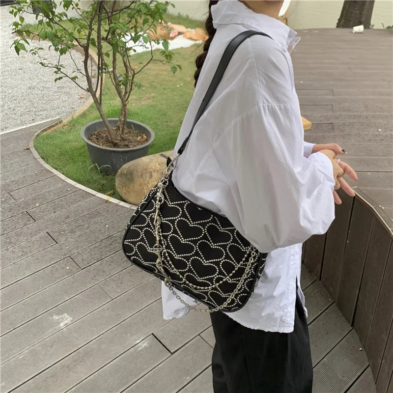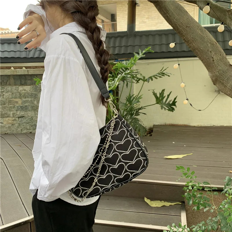Stay stylish with this retro hobo shoulder bag featuring an embroidered heart pattern. Perfect for everyday use and adds a charming touch to your outfit.