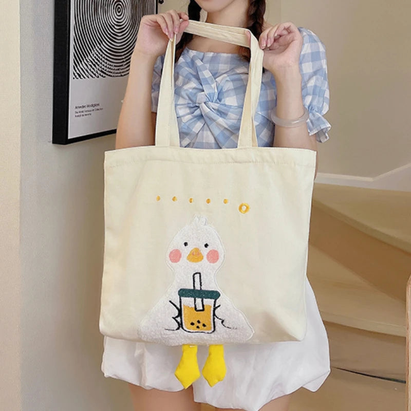 Embroidered Shoulder Canvas Bag Girls College Students Large Capacity