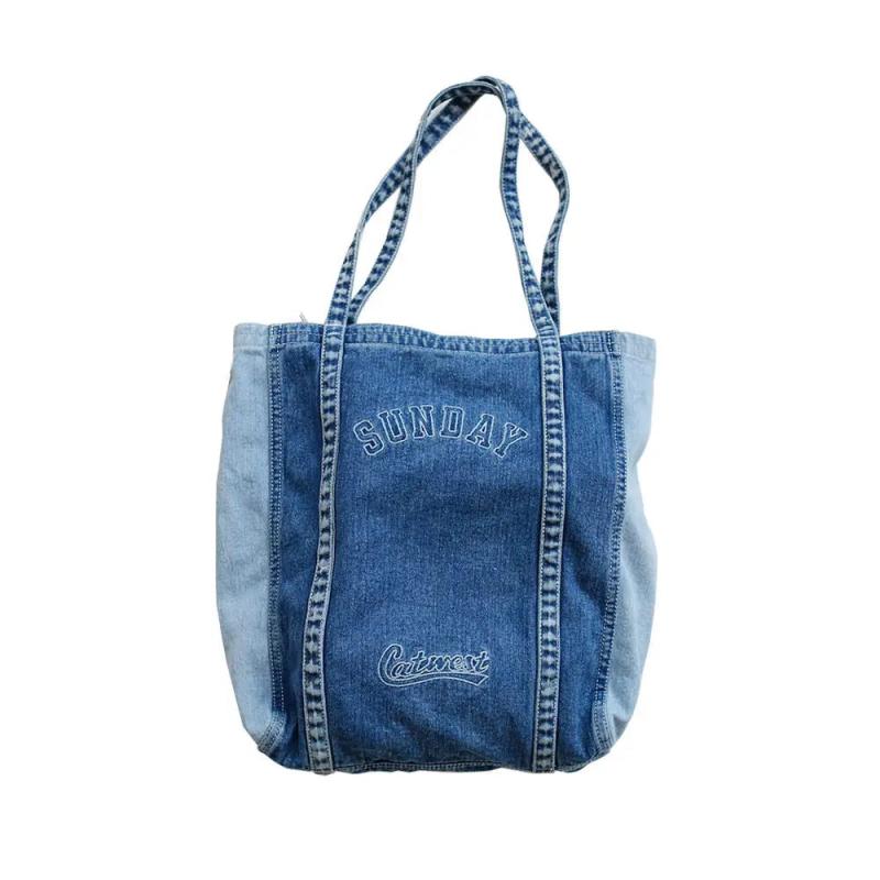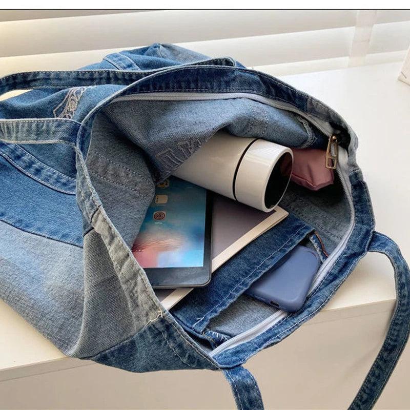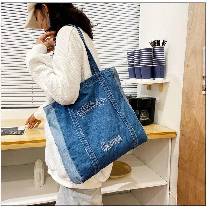 This high durable denim handbag is perfect for girls and women for shopping, school, or casual outings. It offers a large capacity and is reusable.