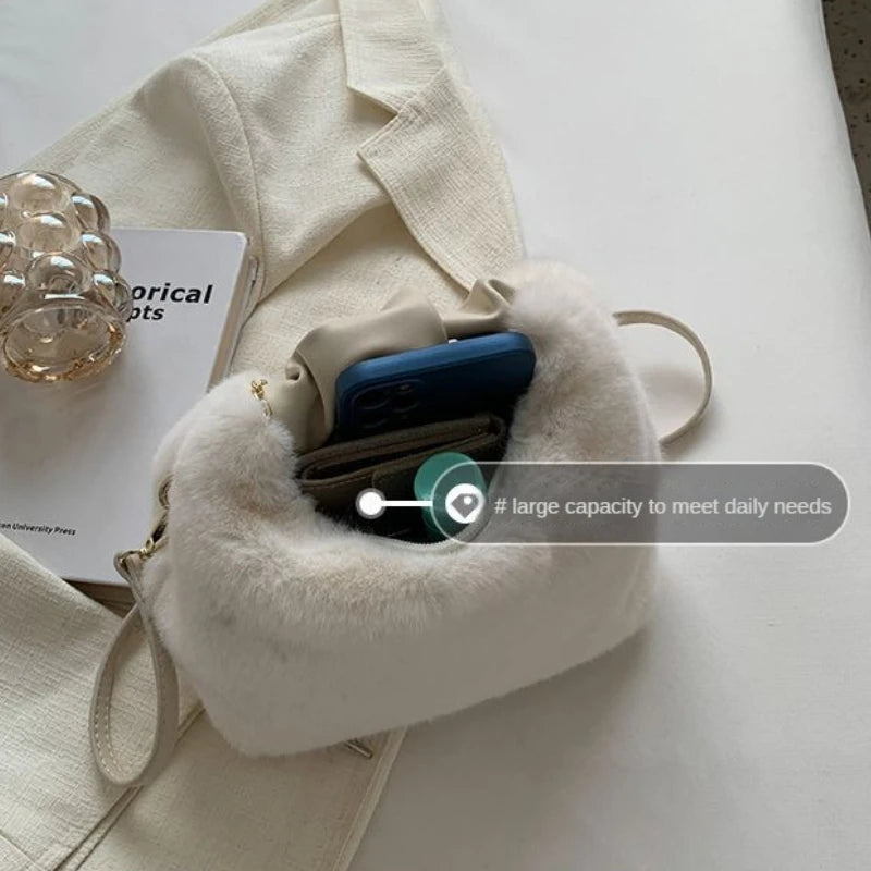 Elevate your style with this chic faux fur handbag. Perfect for carrying your essentials in a trendy and luxurious way.