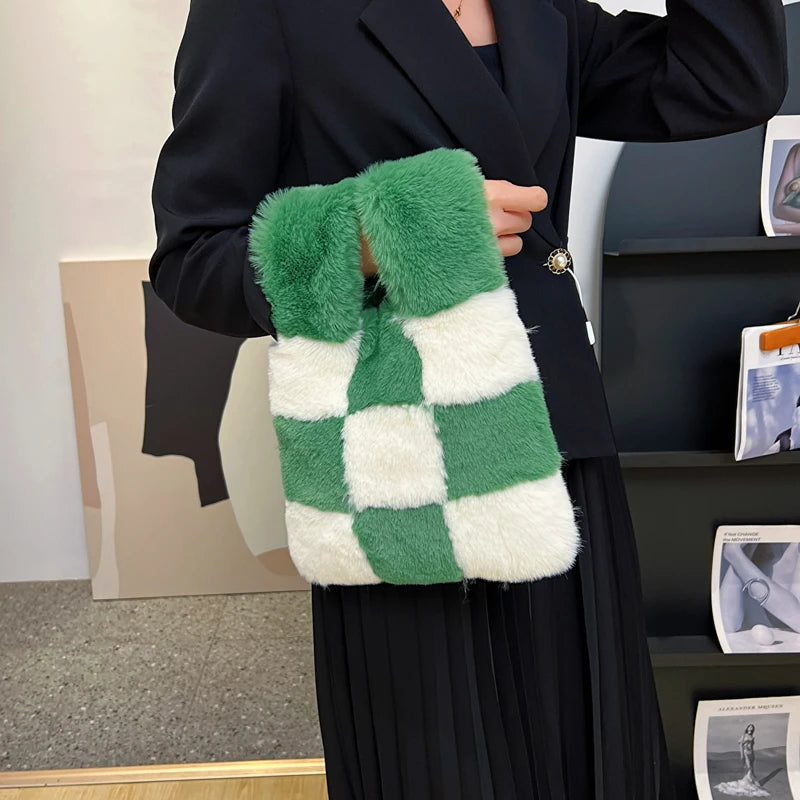 Faux Fur Shoulder Bag Plush Totes Evening Clutches