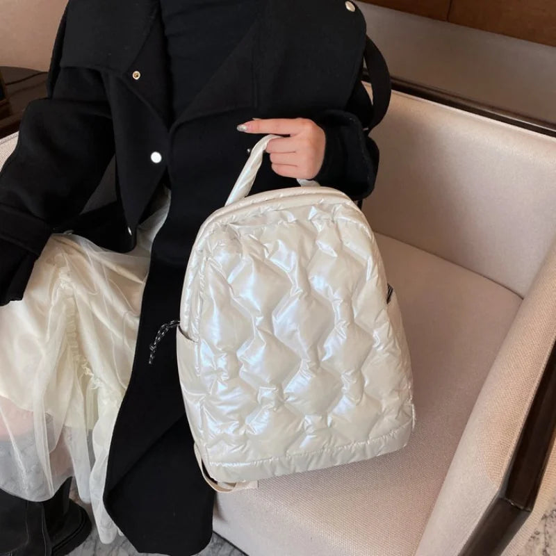 Description:Stay stylish and organized with the Space Down Female Backpack, perfect for school, travel, and daily use. Made with cotton material, this lightweight backpack is comfortable to carry all day long.Features: Fashionable female backpack for autumn and winter Ideal for school, travel, and everyday use Made with cotton material for...
