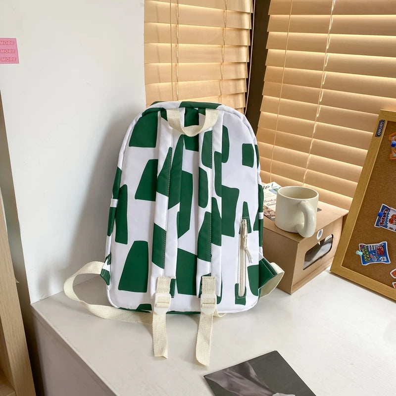 This stylish and practical backpack is perfect for female students. It features a unique graffiti print design, spacious compartments for laptop and books, and comfortable straps for travel.